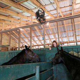 The Side-by-Side Barn is rented as a private barn, with turnout to three acres of pasture. For the safety of all our horses, all lights are protected by cages and we use barn fans with protected motors, not box fans.